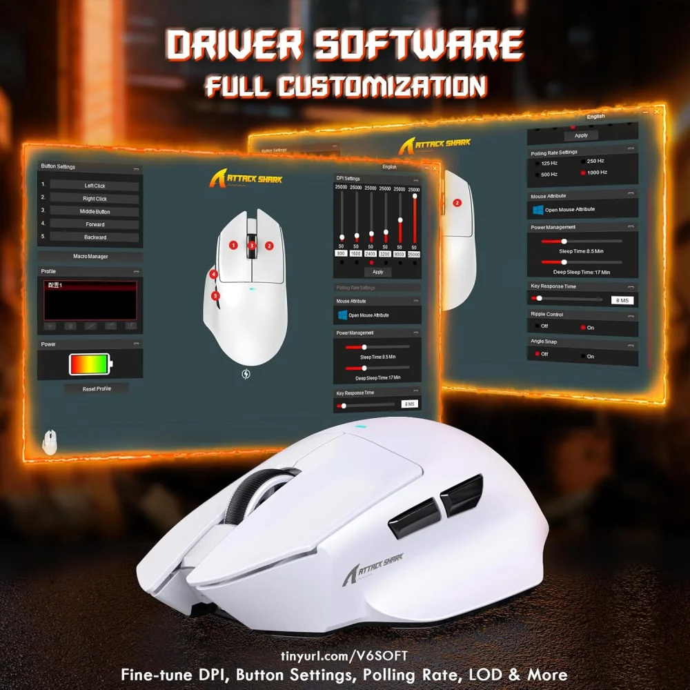Attack Shark V6 Ultra-Light Tri-Mode Gaming Mouse with Charging Dock