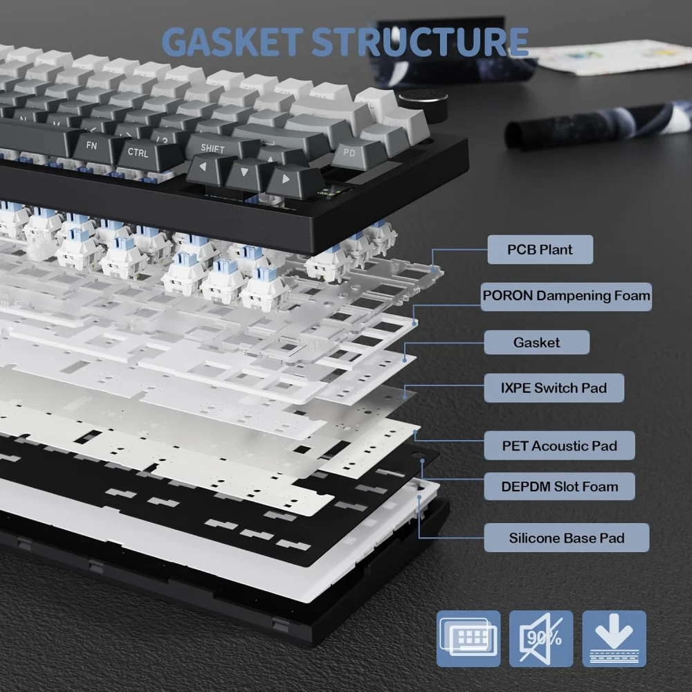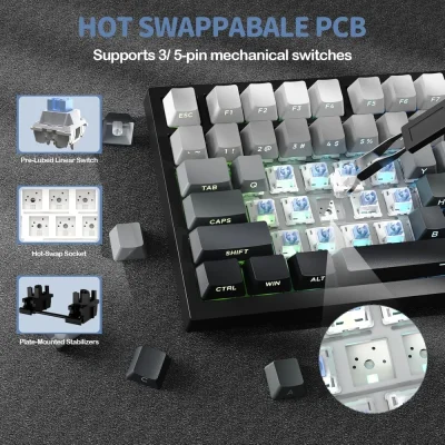 Optimized 75% Compact Layout | Gasket Structure & Hot-Swap Functionality | Vibrant 16.8 Million Color RGB Illumination | 8000 Hz Polling Rate | Tri Mode Connectivy