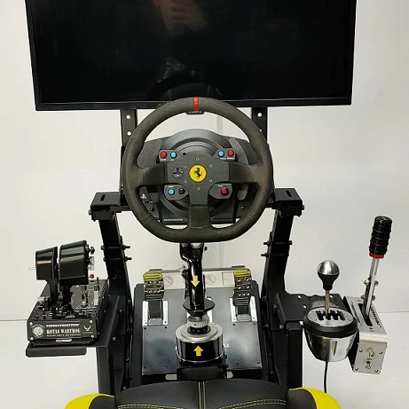 Oyun sükanı, sürət qutusu, qaz və əyləc, monitor və PS üçün xüsusi bölmələri olan oyun stendi