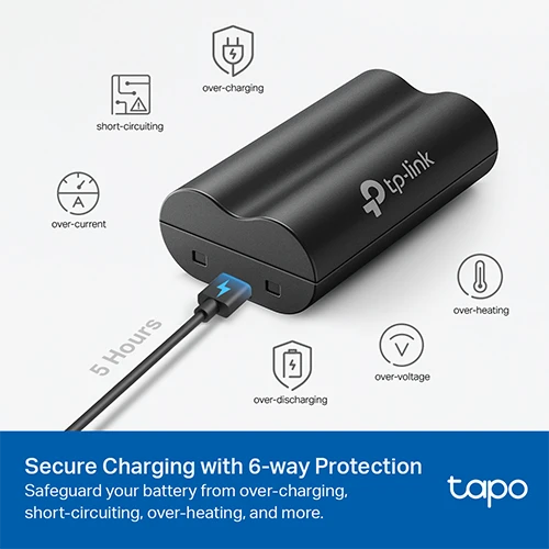 6700mAh Large Capacity-Extends the usage time(up to 180 days)† of your Tapo battery-powered cameras and video doorbells.